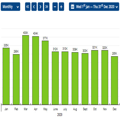 estadísticas de accesos por mes a Todalaprensa del año 2020),